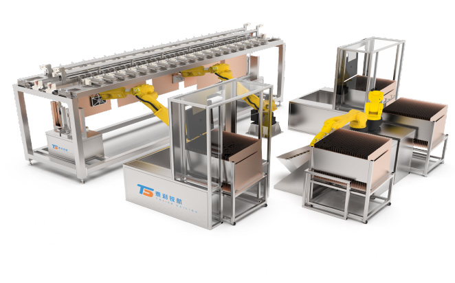 龍門線自動化對于鍍板質量有提升選擇雙手臂, 可實現雙工位上下板不間斷持續工作占地面積較少